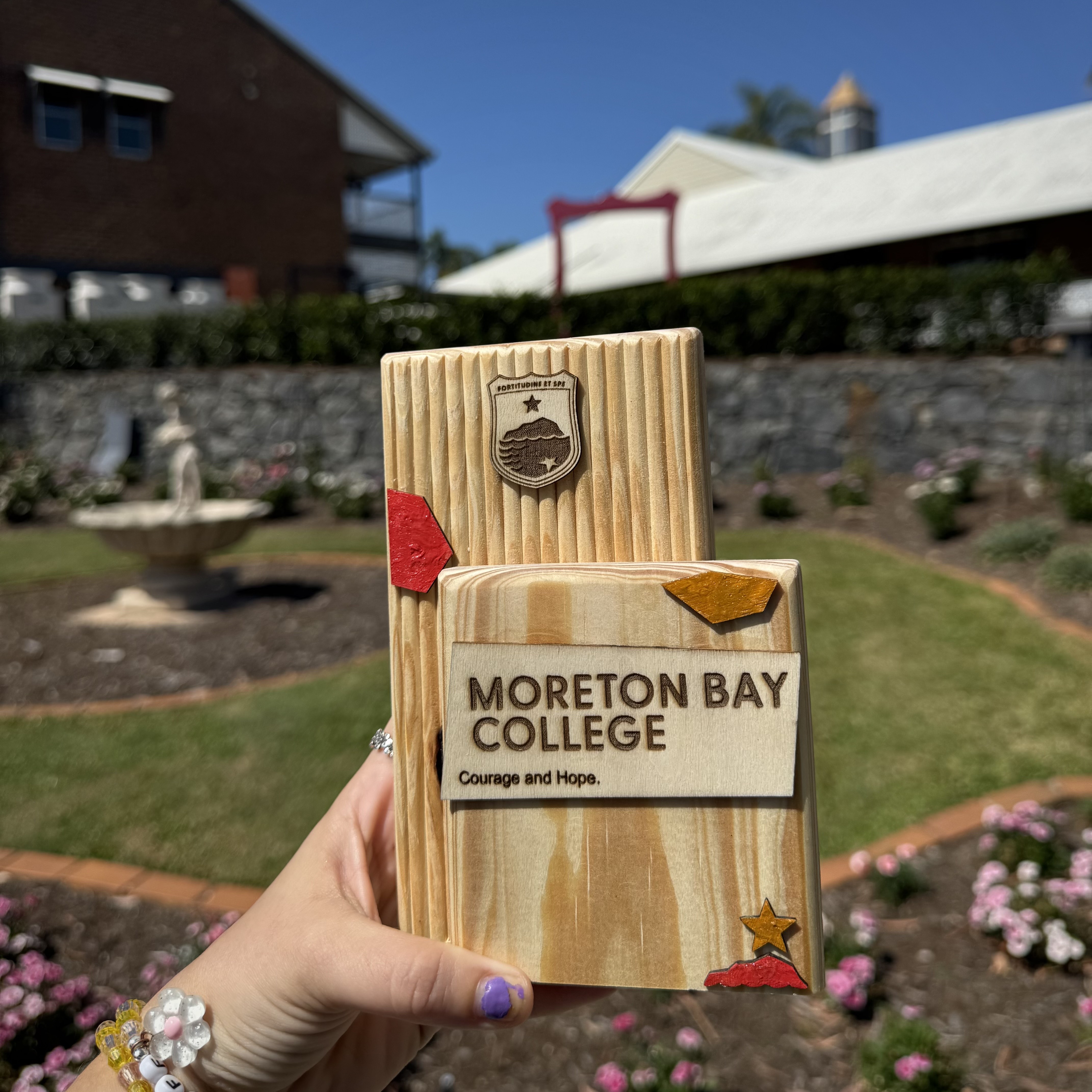 Moreton Bay College Award. Custom timber award celebrating Courage and Hope at Moreton Bay College.